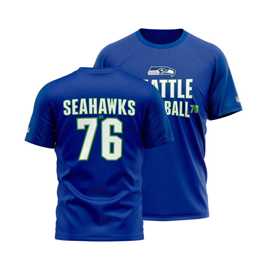 Com estampas nas cores característica do Seattle Seahawks e confeccionada em tecido azul de alta qualidade, esta camiseta oferece conforto e estilo inigualáveis. Inspirada nas camisas de jogo do time, as estampas nas costas apresentam o nome do time e um número significativo: o ano em que o Seattle Seahawks foi fundado, adicionando um toque histórico e simbólico à peça.